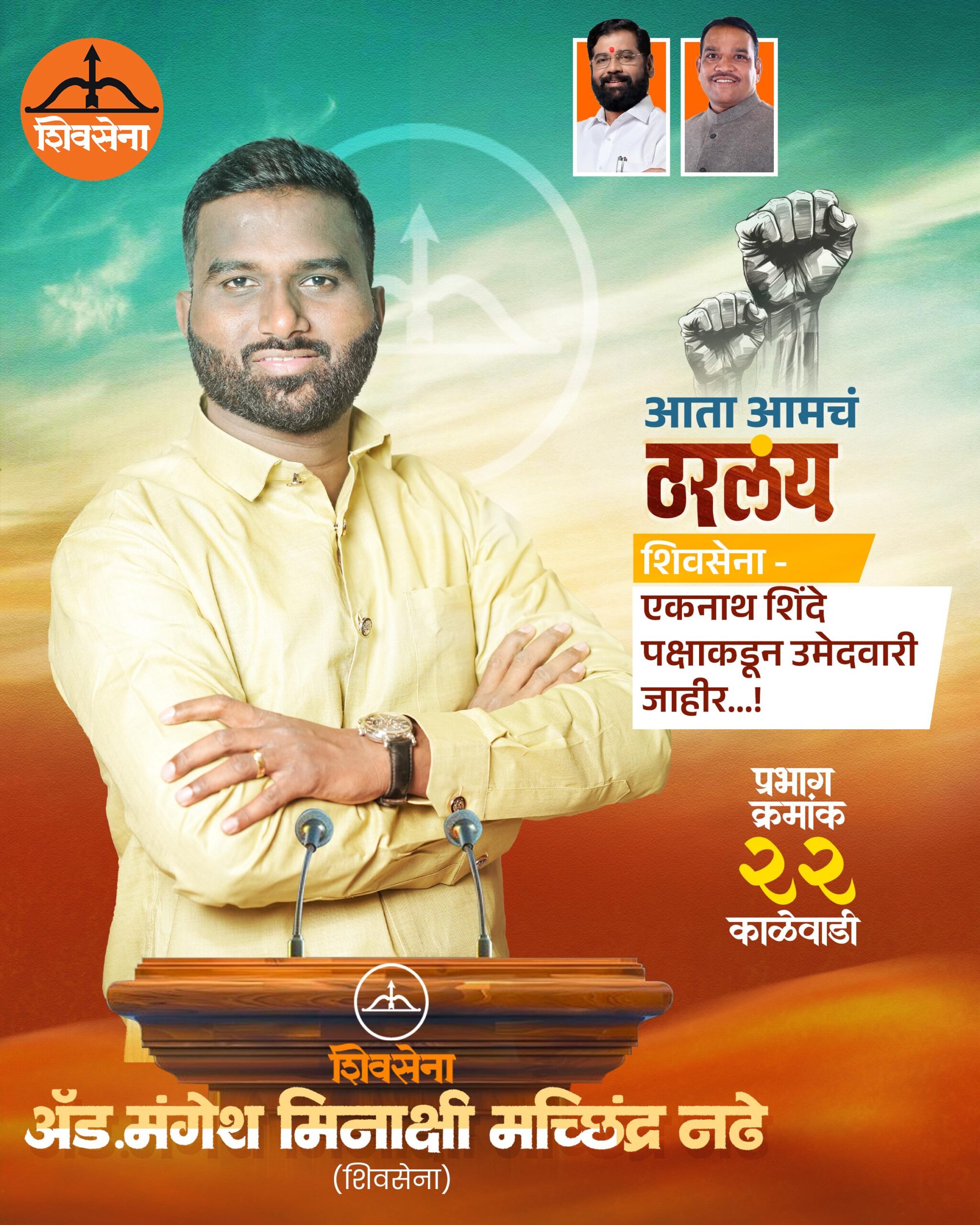 पिंपरी-चिंचवड | प्रतिनिधी : गणेश नारंगपिंपरी-चिंचवड शहरातील काळेवाडी प्रभाग क्रमांक २२ मध्ये राजकीय वर्तुळात मोठी खळबळ उडवणारी घडामोड समोर आली आहे. भाजपने तिकीट नाकारल्यानंतरही संघर्ष न थांबवता ॲड. मंगेश नढे यांनी थेट मैदानात उतरण्याचा निर्णायक पवित्रा घेतला आहे.“खिंच के ताण, धनुष्यबाण” असा आक्रमक नारा देत त्यांनी शिवसेना कडून अधिकृतपणे उमेदवारी अर्ज दाखल केला.