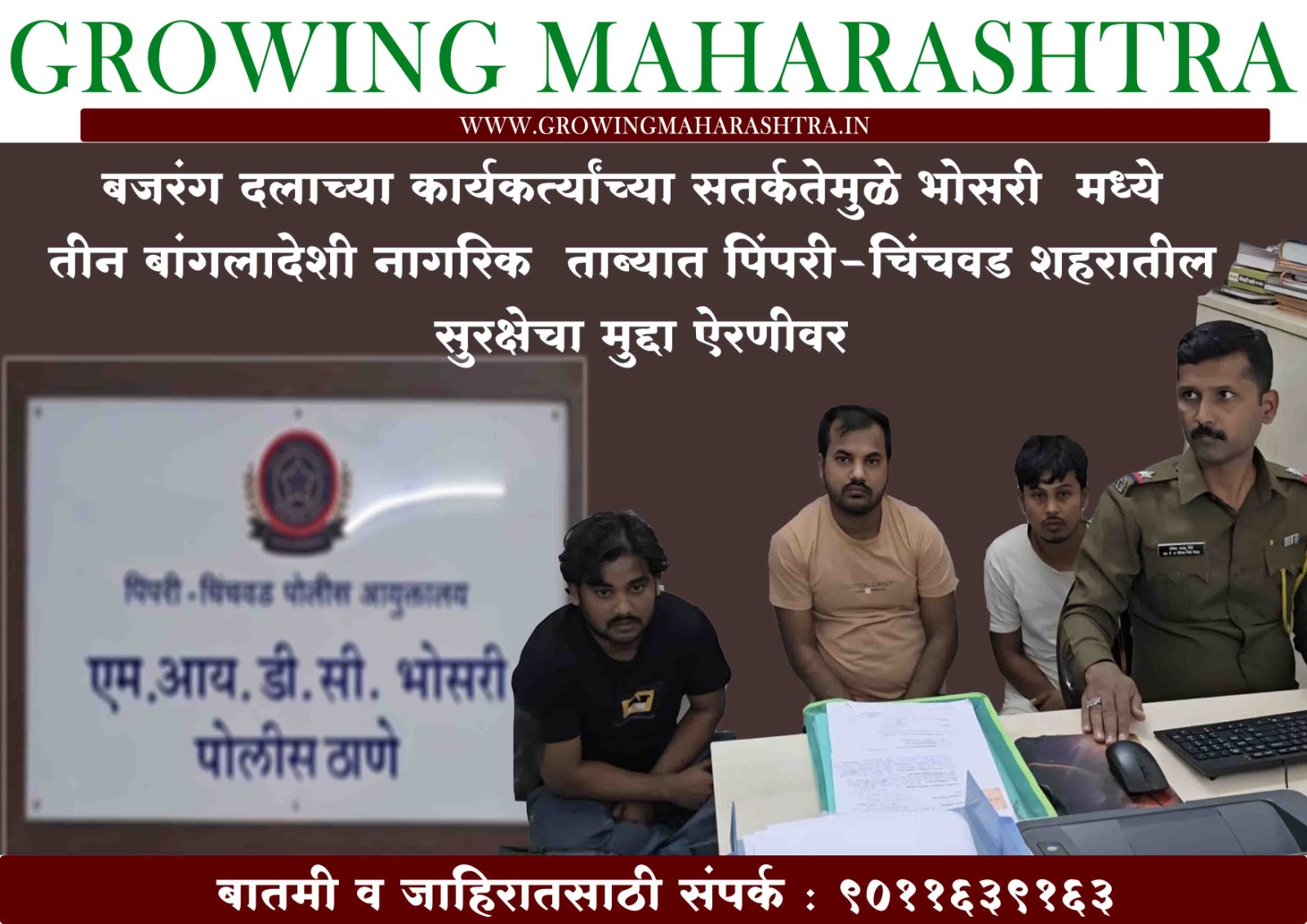 पिंपरी-चिंचवड शहरातील अंतर्गत सुरक्षेच्या दृष्टीने अत्यंत महत्त्वाची घटना समोर आली असून, भोसरी MIDC परिसरात तीन बांगलादेशी नागरिक आढळल्याने परिसरात खळबळ उडाली आहे. स्थानिक पातळीवर सतर्कता दाखवत विश्व हिंदू परिषद बजरंग दलच्या कार्यकर्त्यांनी या तिघांना ताब्यात घेऊन पुढील कारवाईसाठी थेट पोलिसांच्या स्वाधीन केले. ही कारवाई भोसरी MIDC पोलीस स्टेशन हद्दीत नोंदवण्यात आली आहे.